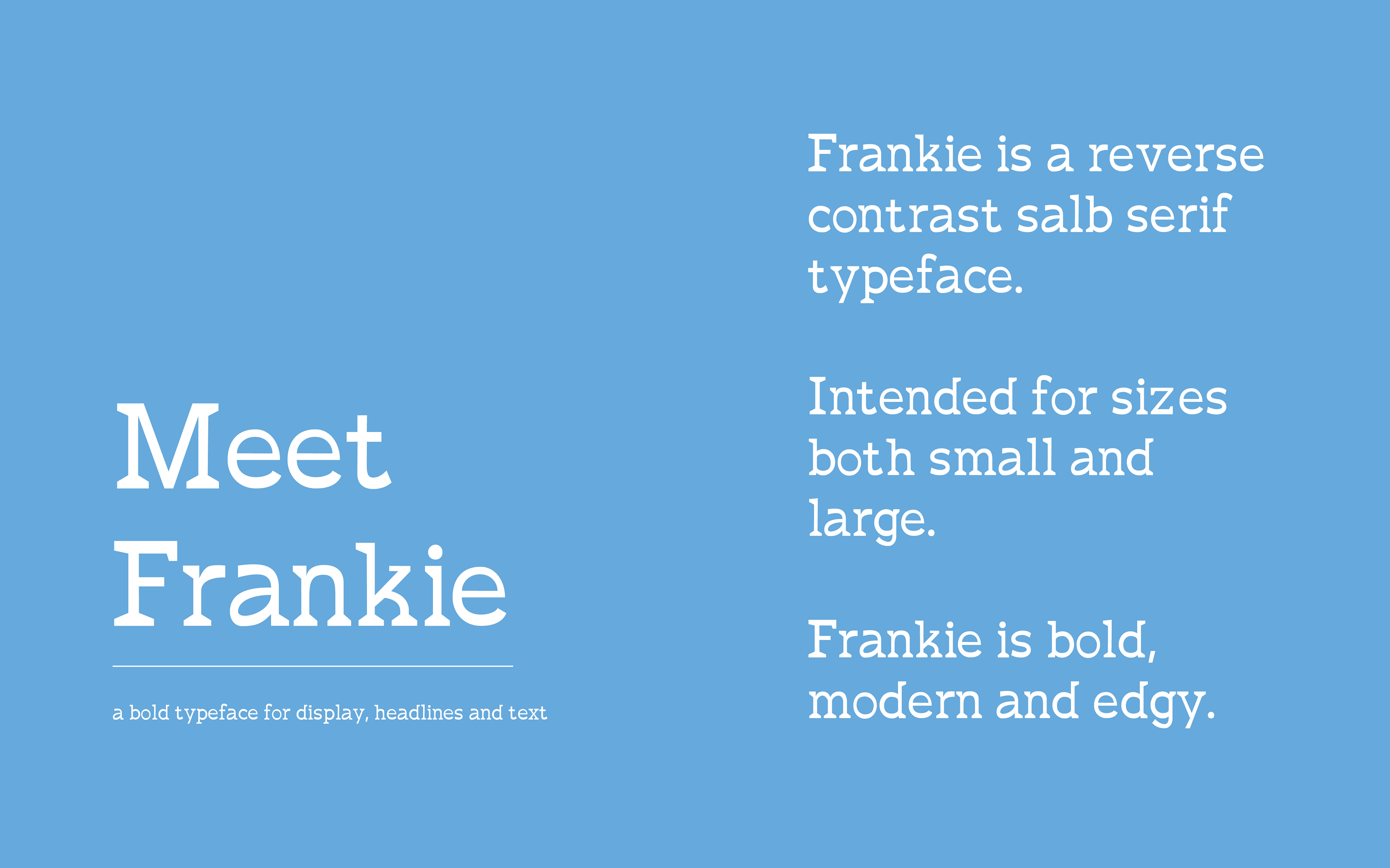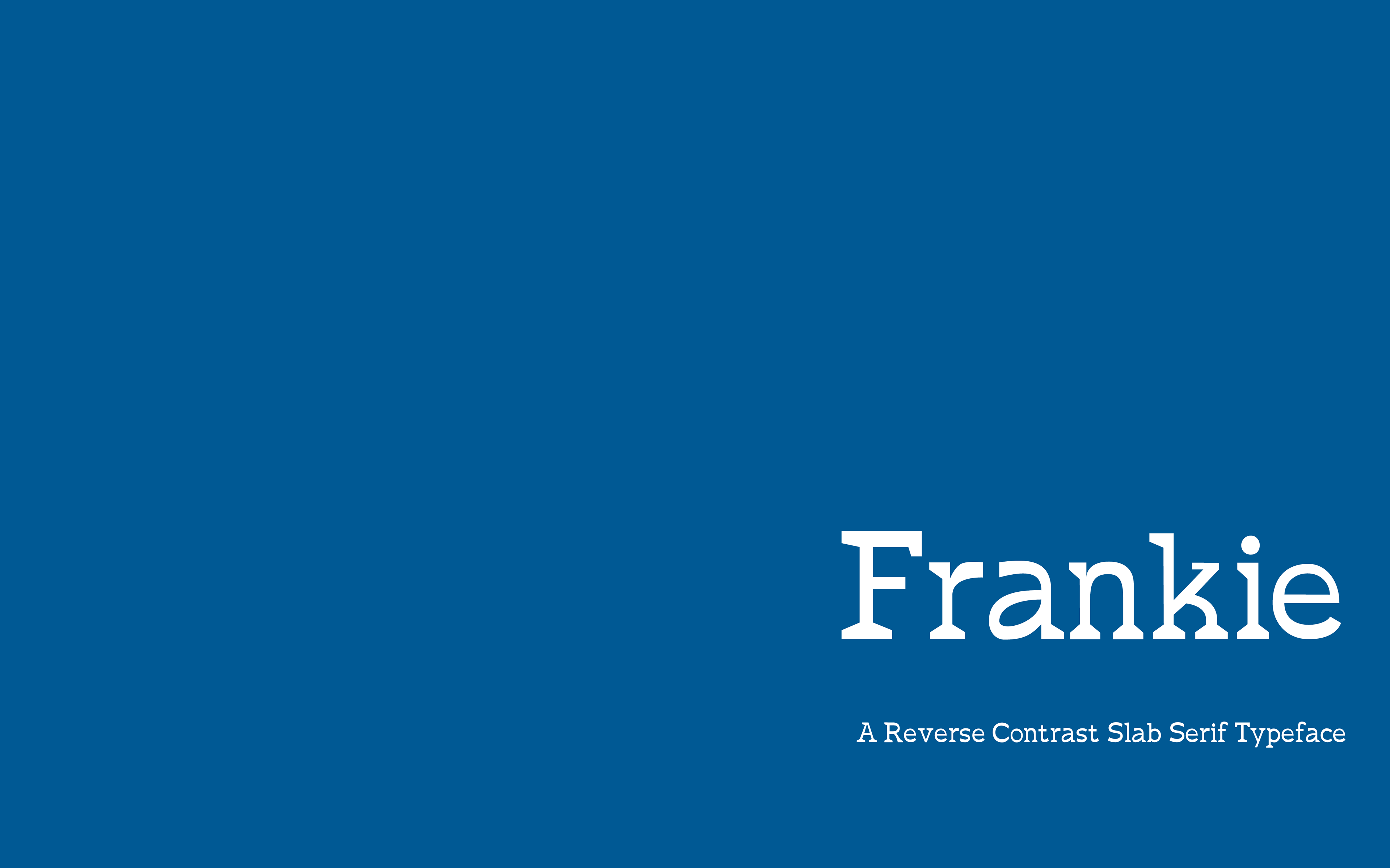 Frankie is a reverse contrast slab serif typeface that is intended for both small and large display type in editorial design. Frankie is meant to be bold, modern, quirky and edgy.